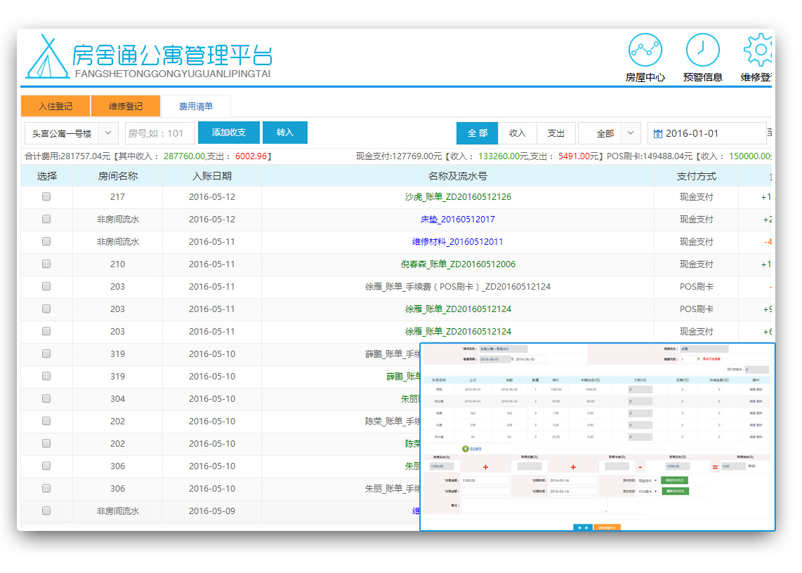 支付方式;房間費(fèi)用收支流水可追溯來(lái)源,收